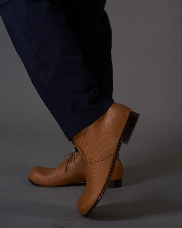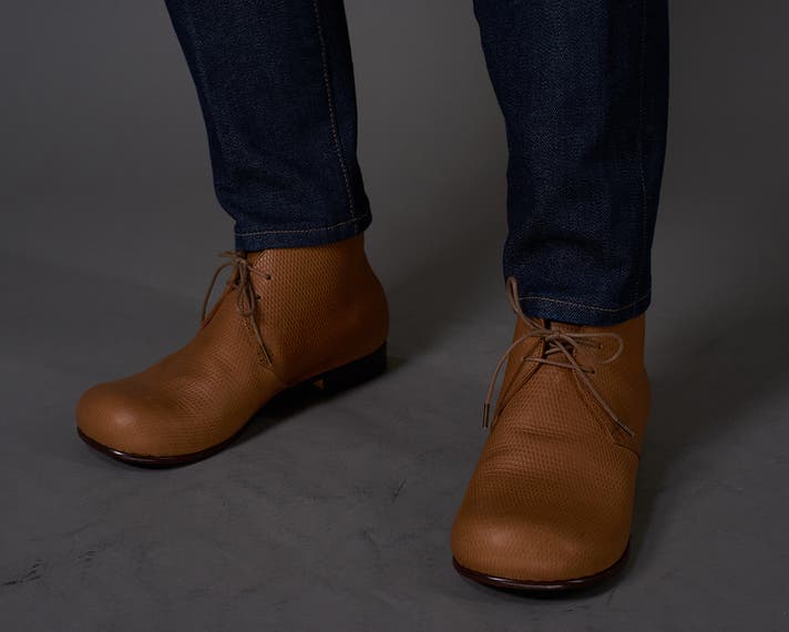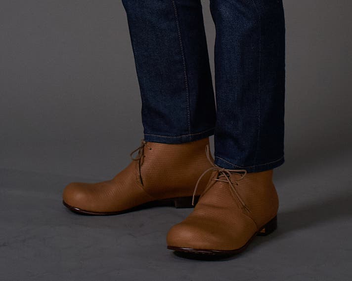 "永く愛される靴"という理想を追う中で、自然とたどり着いたのがチャッカブーツの形でした。