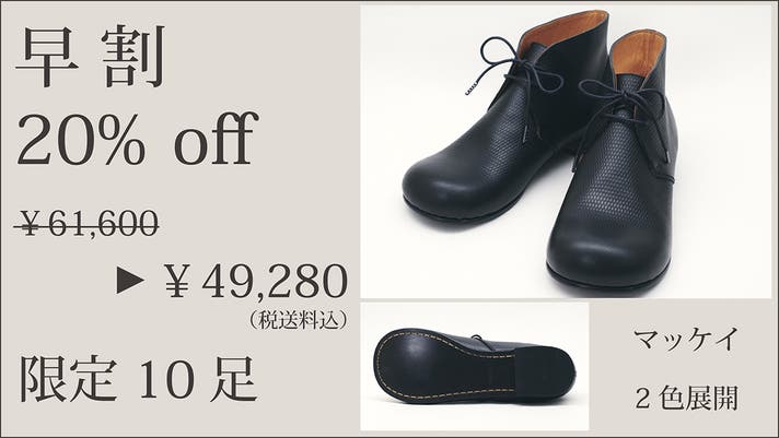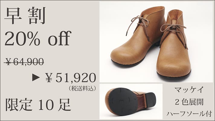 実行者自身が1足1足責任を持って製作させていただきますので、製作にお時間いただきますこと、ご理解いただけますと幸いです。