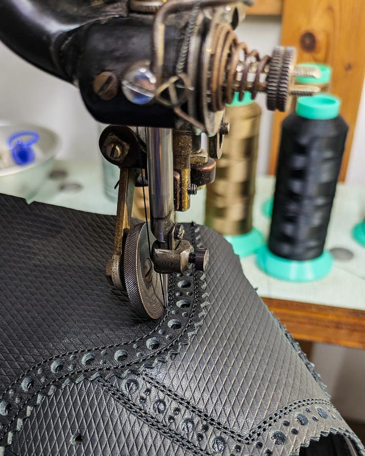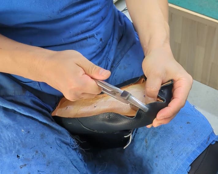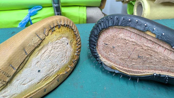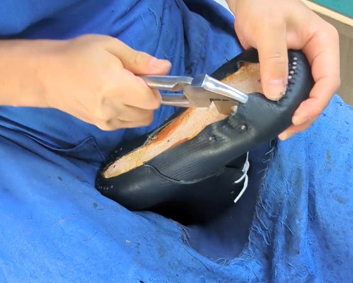 天然皮革は部位によって硬さや癖などの個体差がありますが、手作業なので微調整が効き、細部まできっちり木型の隆起を写し取ったような、立体的な靴にかたちづくることができます。