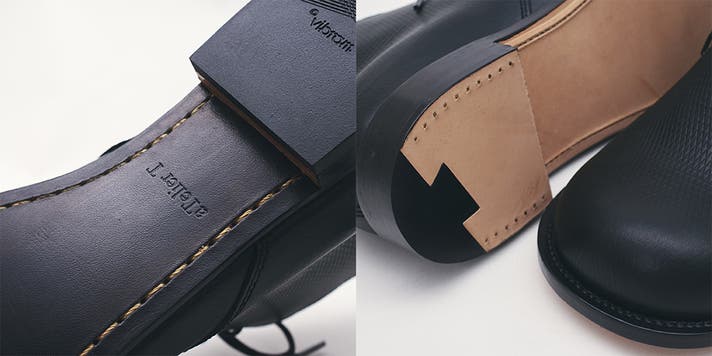 ソール周りのゴム材(ヒールリフト・ハーフソール)には、世界的に評価の高いVIBRAMの素材を採用しています。耐久性・グリップ性に優れ、革底の上品さを損なわずに実用性を高めます。