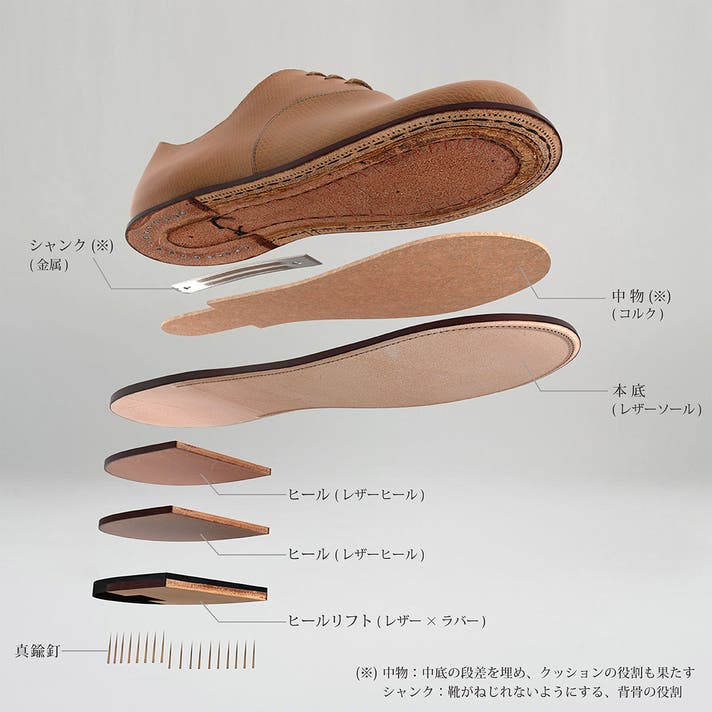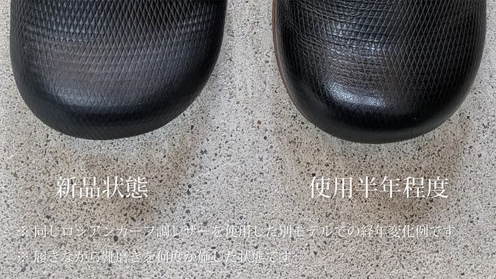 - オリジナルレザーの表情と木型のシルエットが、上質な佇まいを描き、快適な履き心地を実現