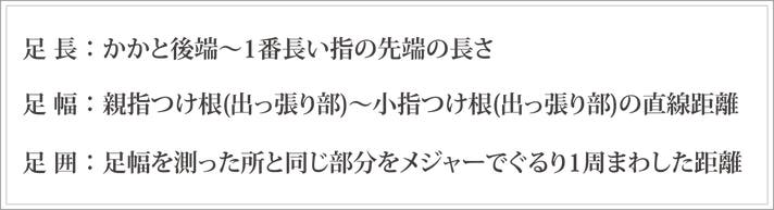 足幅と足囲を図るポイントの補足情報として、下の画像をご参考ください。