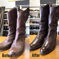 靴同様に「サフィールノワール」を使い丁寧に磨き上げていきす。 ブーツは革の素材も沢山あります。革の素材に合わせてクリームを使い分けて作業をしていきます。