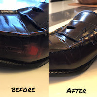 つま先や踵など知らない間に傷がついてる事って経験あると思います。そんな傷も当店で綺麗に補修させて頂きます。