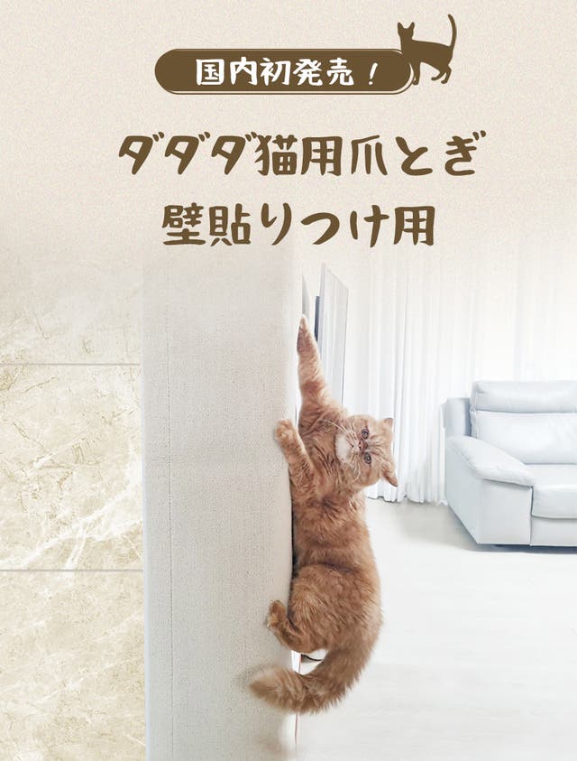 40年の実績を持つカーペット専門メーカーが生み出した『ダダダ猫用爪とぎ_壁貼りつけ用』! “一度も登ったことのない猫はいても、一度しか登ったことのない猫はいない”と言っても過言ではない、ホットなアイテム!