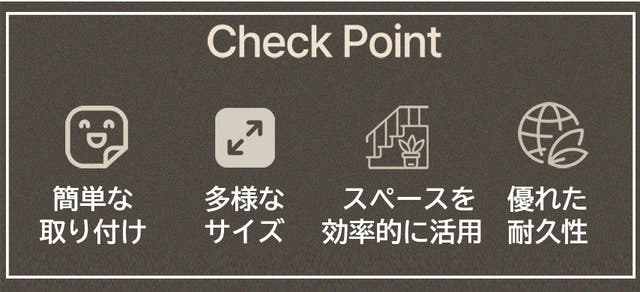 - スペースを効果的に活用!簡単な取り付け!多様なサイズバリエーション!