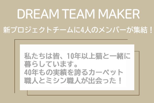 そこで!!カーペット専門企業である我々が、新プロジェクトとして直々に猫用品を開発することに。何より品質にこだわり、カーペット専門家としてのプライドをかけて作りました!