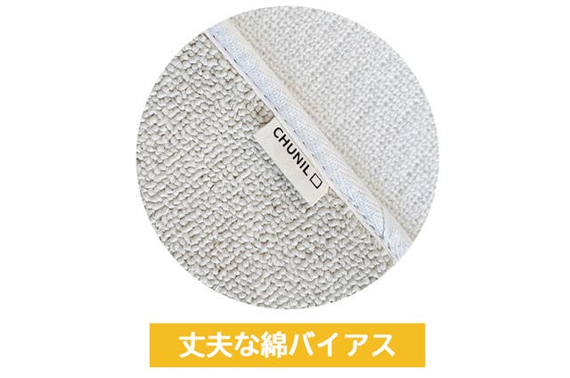 綿バイアス:40年以上の実績を誇るミシン職人の技術で完成したバイアス仕上げで、きれい&丈夫な作りが特徴です。