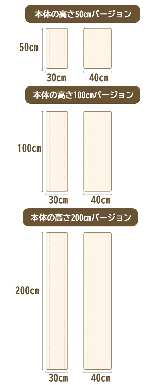 50cm、100cm、200cm !3つの高さから選択!30cm、40cm ! 幅のサイズも選べる!
