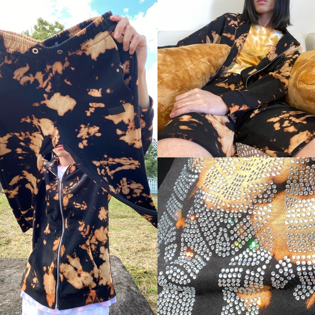 CHUNYI YANG×真頭玩具コレクションのラインストーンスウェットパーカーセットアップ先行販売は30着限定で一枚一枚職人さんによる絞り染(おまかせORグラデーション)× 【超超早割20%OFF】。