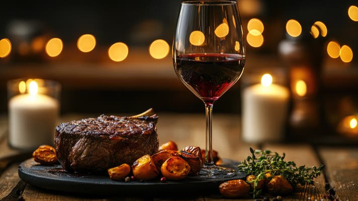 こだわりのアンガス牛ステーキと極上のワイン。