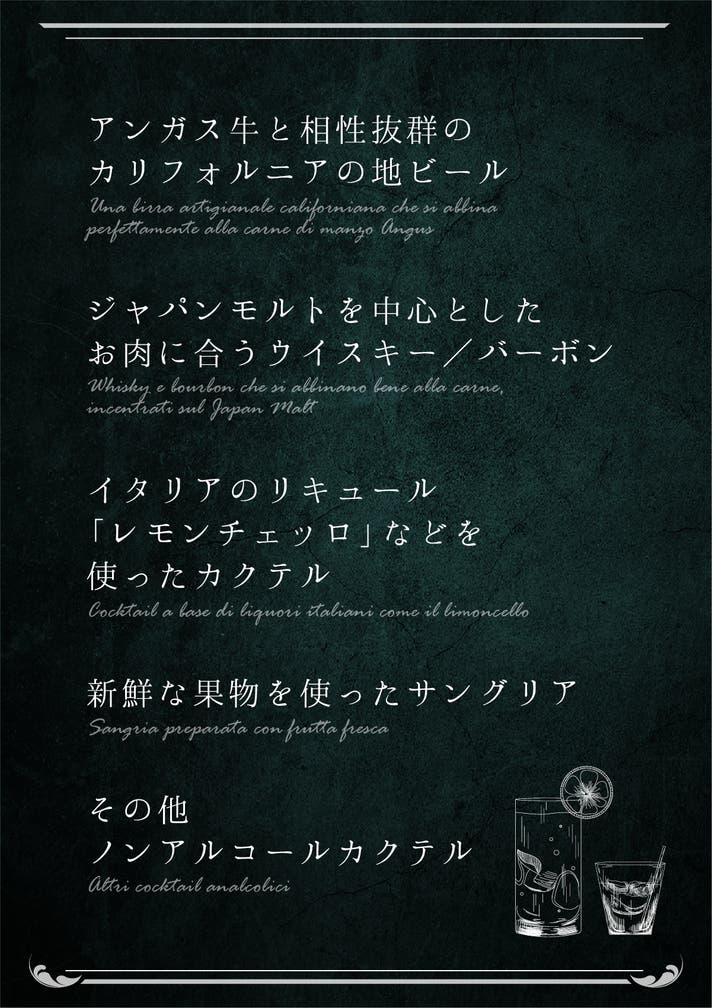 ワインをあまり飲まれないという方のために、ワイン以外のドリンクもご用意しています。