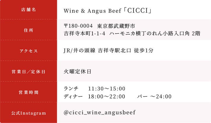・公式Instagram:https://www.instagram.com/cicci_wine_angusbeef/