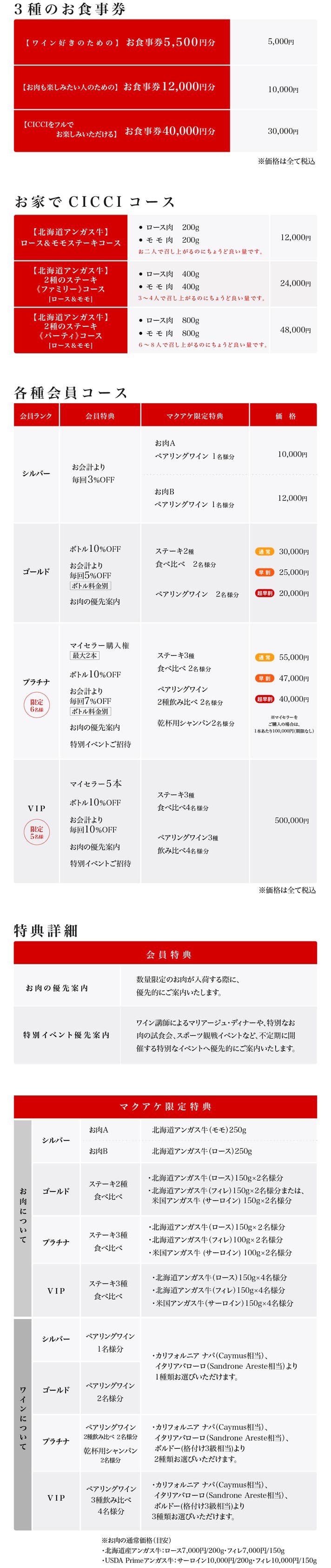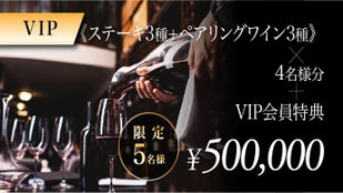 【VIP】《ステーキ3種+ペアリングワイン3種》×4名様分+VIP会員特典