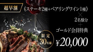 【超早割】《ステーキ2種+ペアリングワイン1種》×2名様分+ゴールド会員特典