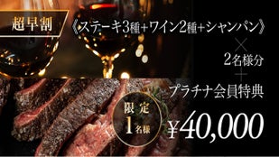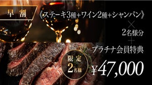 【超早割】《ステーキ3種+ワイン2種+シャンパン》×2名様分+プラチナ会員特典