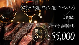 《ステーキ3種+ワイン2種+シャンパン》×2名様分+プラチナ会員特典