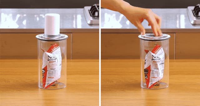 真空パワーとキャニスターの密封性により、容器を逆さにしても液漏れしません。