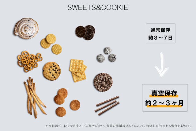 40kPaの強い真空プラス容器の密封性が優れているため、ドライフードも常に食感と味が良い状態で召し上がれる。