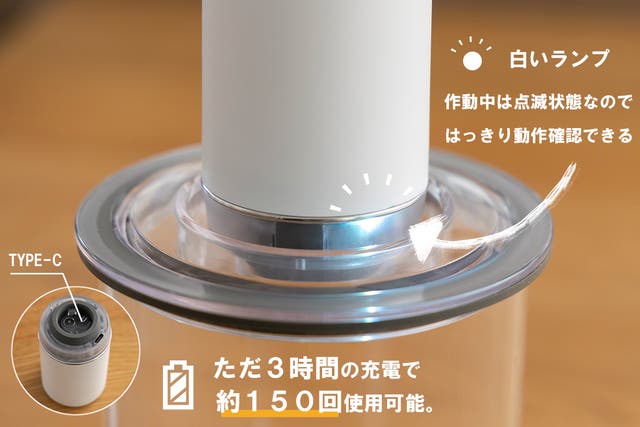 一回のフル充電で約150回持続使用可能!頻繁に充電する必要はありません。