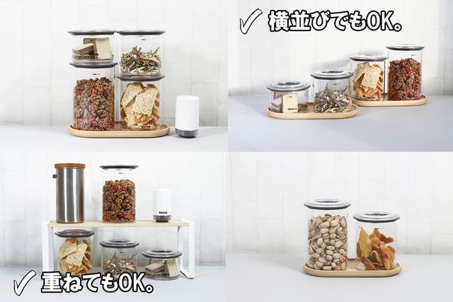 Cielob真空キャニスターは今回特別ご用意した専用の木製トレーで収納もスッキリ!