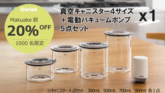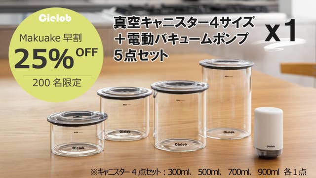 【Makuake超早割】Cielob真空キャニスター4サイズ&電動ポンプ x2