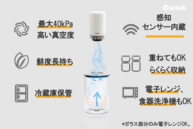 Cielob(セーロブ)は続いてきた食のおいしさを長持ちする健康のライフスタイル及び使いやすさと楽しく保存・収納をテーマに商品を開発する今回Cielobより、ボタン操作がなくても真空吸引が可能な自動真空キャニスターシリーズが誕生!