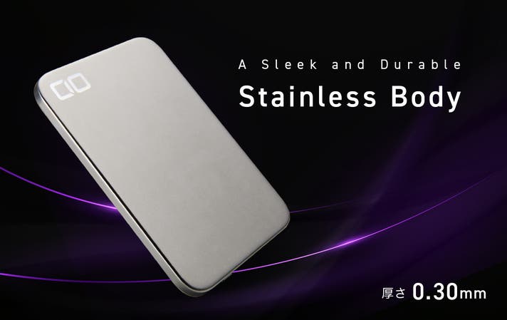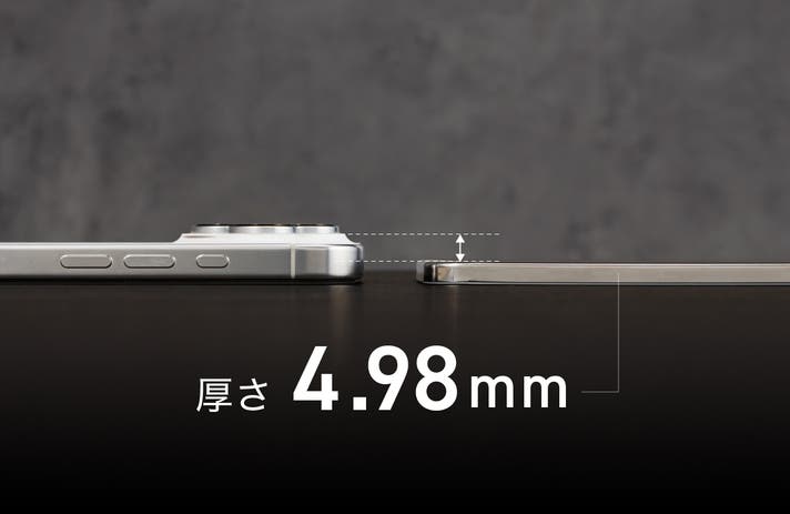 財布や手帳の中にも収まる、厚さ4.98mmの超薄型設計。
