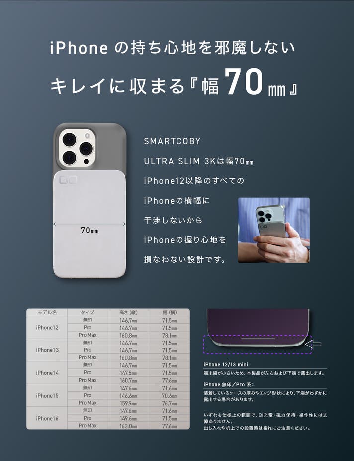 “SMARTCOBY ULTRA SLIM 3K”は幅70mmに設計。