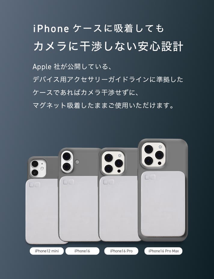 ケースであればカメラ干渉せずに、マグネット吸着したままご使用いただけます。