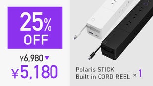コンセント7口分の電源タップにノートPCの充電可能な67W高出力の充電器、そして汎用性抜群のUSB-Cケーブル。デバイス充電に欠かせないこの3つのアイテムが、まさかの一台に。充電時の使い勝手をまるごと進化させる、Polaris STICK Built in CORD REELの登場です。