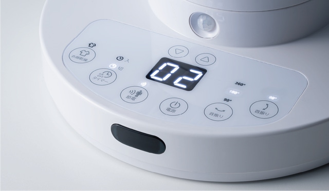 操作部には大きく見えやすいデジタル表記を採用。11段階の風量設定も一目で分かります。またタッチ式を採用しているのでふき取り掃除などもしやすく設計しました。
