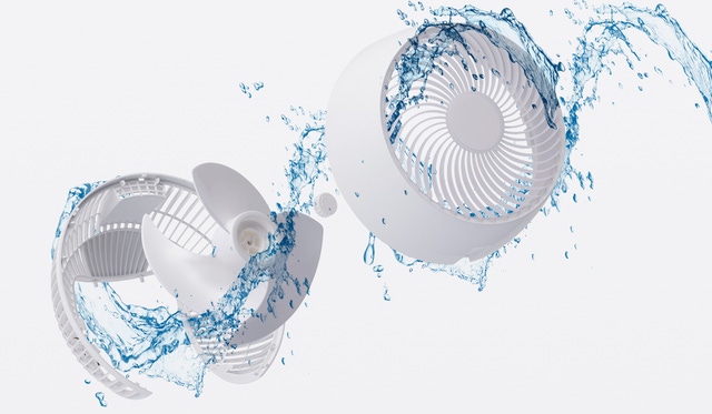 サーキュレーターの課題であるお手入れの難しさを、工具不要の全分解構造で解決しました。ファン部分の4つのパーツを取外し、水洗いすることで清潔を保ちます。