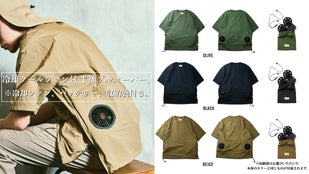 「冷却クールファン付き、半袖プルーオーバーシャツ」OLIVE、BLACK、BEIGEの3色展開