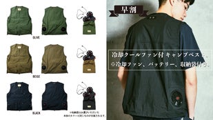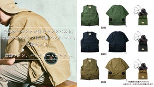「冷却クールファン付き、キャンプベスト」OLIVE、BLACK、BEIGEの3色展開