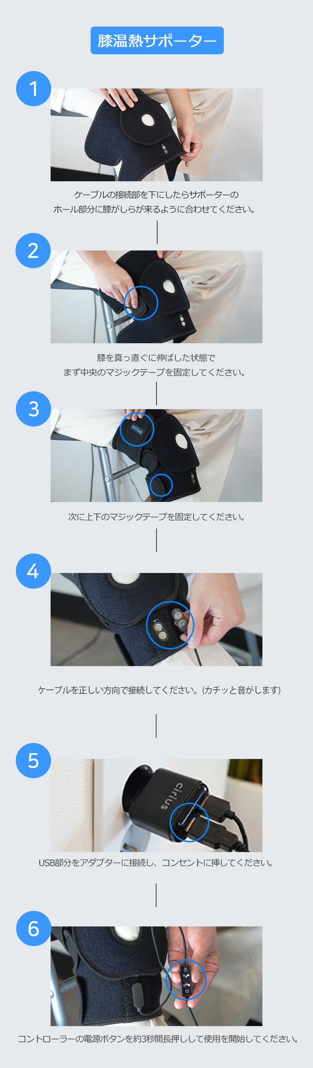 電源の接続が不便な製品はモノがどんなに良くてもいずれ使わなくなってしまいます。ですが、シリアスの温熱サポーターは、モバイルバッテリー、スマホの充電ポート、ノートPC、車の充電ポートなどUSBポートさえあれば、いつどこでも手軽に使用することができます。