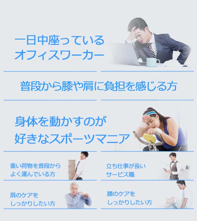 - 膝や肩の奥深くまでじんわりと包み込んでケアできる部位別専用ヘルスケアアイテム!
