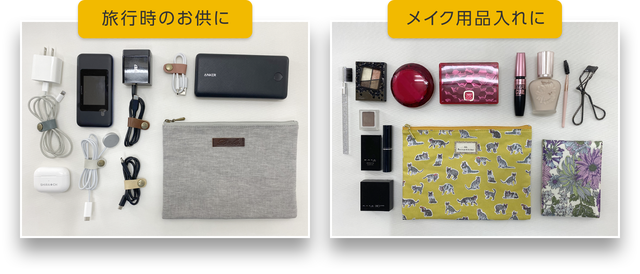 ・トラベルポーチ× 1点とフラットポーチ×1点の合計2点