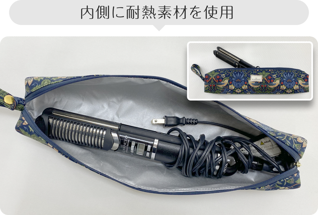 dale.ヘアアイロンポーチは内側に耐熱シートを使用しているので、燃えたり、溶けたりする心配ございません。時間ギリギリまで納得できるスタイリングをしてください。