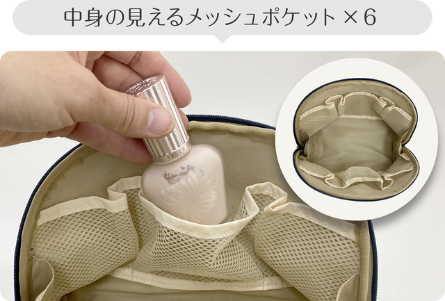 内部には6つの見やすいメッシュポケットがあり、細かいものを分別して収納することができます。