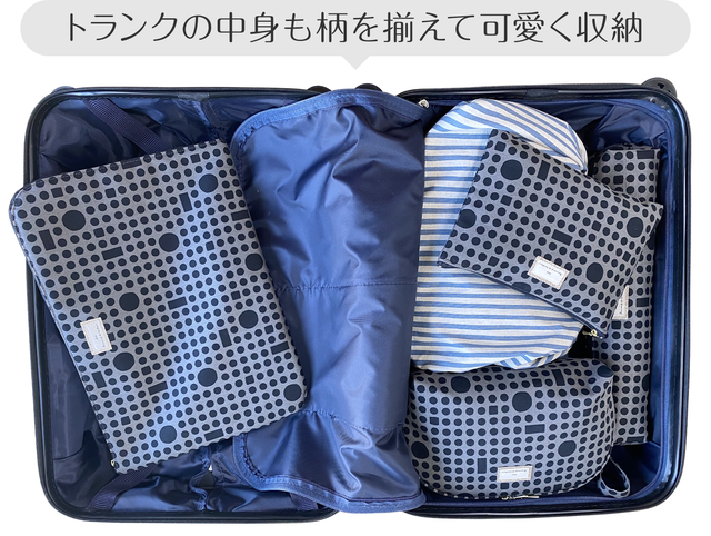 旅行はいつもとは違う非日常の空間、せっかくだったら、トランクの中身を同じ柄のポーチで揃えてみませんか?一つ一つもかわいいけど、こうやって揃うとよけいにかわいく見えちゃう!