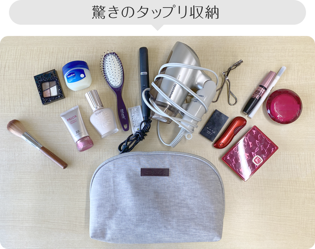 ドライヤーも収納できる大容量の大型ポーチ。