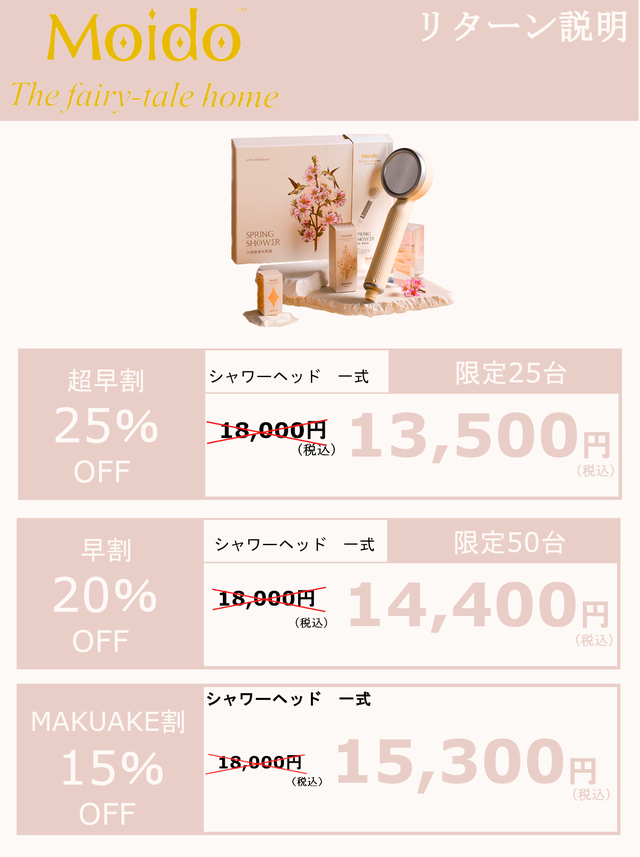 「Makuake(マクアケ)」は、実行者の想いを応援購入によって実現するアタラシイものやサービスのプラットフォームです。このページは、 プロダクトカテゴリの 「「上質なお肌」と「心の和み」を!Moidoアロマシャワーヘッド」プロジェクト詳細ページです。