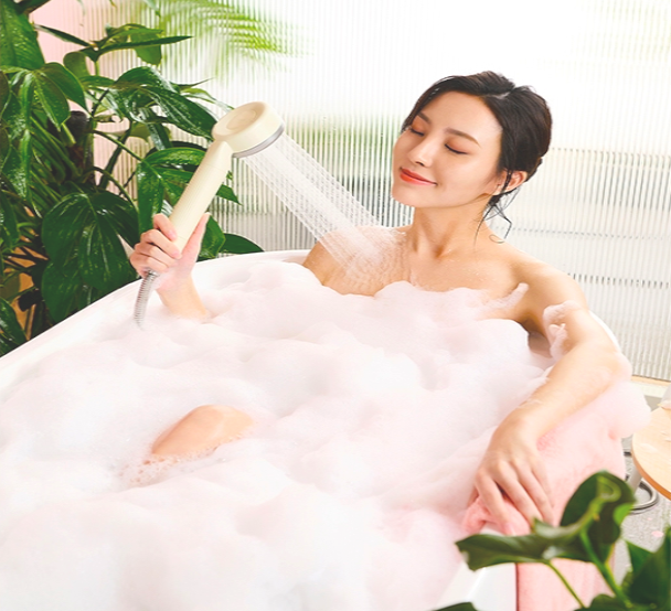 独自のアロマオイルの香りに包まれる陶酔感のみでなく、シャワーを浴びるだけで肌に必要な物をお届けし、シャワーを浴びる度にエステサロンに行っているかのような心地になります。極上のシャワー体験で日々の幸福度もアップ。忙しいあなたに贅沢なシャワーヘッドなのです!