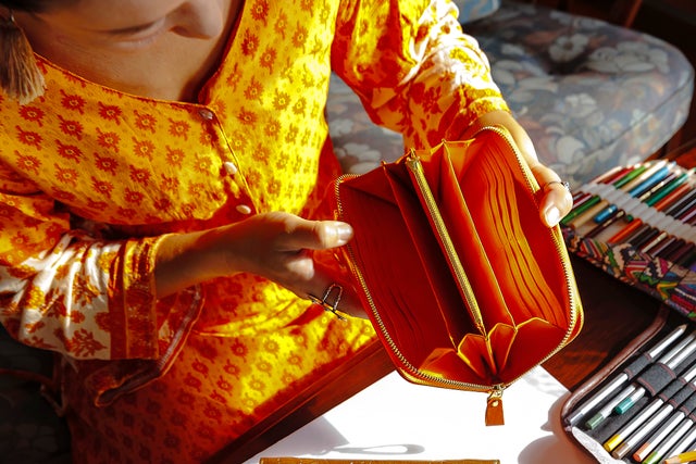 今回は、ハイブランドにも採用されている鮮やかなオレンジ色の高級革を選びました。