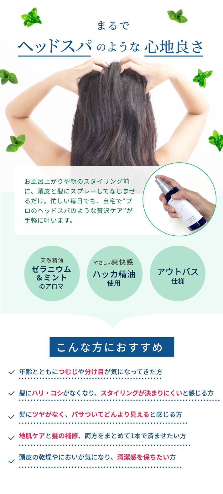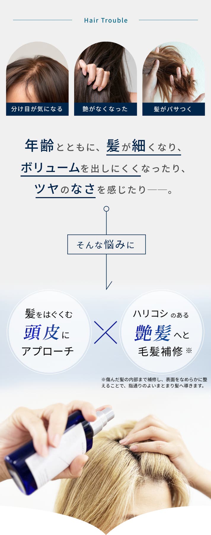 - 髪のエイジングケア※「頭皮美容液」と「毛髪補修※」が1本で完結!ハリコシ艶に自信!