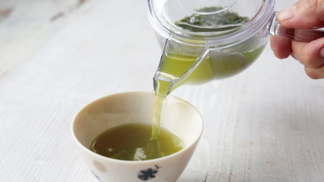 4.一般的な煎茶なら約1分、深蒸し茶なら30秒~1分待ちます。茶葉がゆっくり開く様子を楽しみましょう。