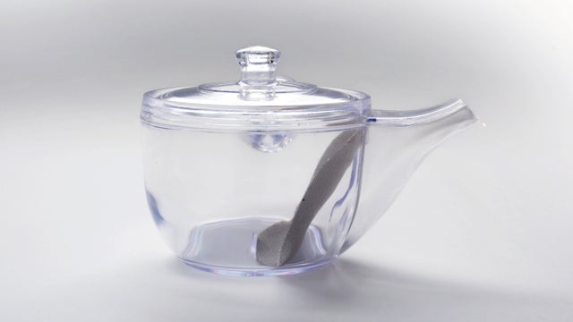 「割れない透明急須」は、2つの部品を超音波溶着することで、注ぎ口がじょうろのように伸びている馴染み深い急須の形状を維持しています。