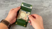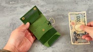 何も入れていない状態から、お札5枚・小銭16枚の1万円分のお金をいれても厚みは約3mmしか膨らみません。※革の硬さなどの個体差により多少前後します。