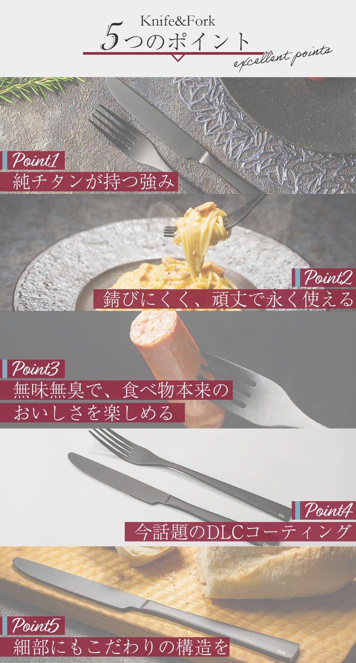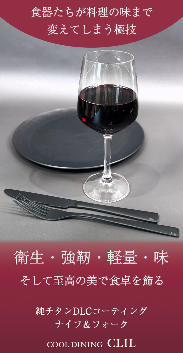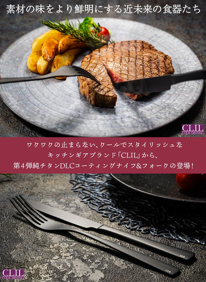 今回は、COOL DINING CLILから、純チタンDLCコーティングの「ナイフ&フォーク」のご提案です。